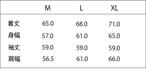 M 着丈 65.0 身幅 57.0 袖丈 59.0 肩幅 56.5