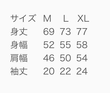 M 身丈 69.0 身幅 52.0 肩幅 46.0 袖丈 20.0